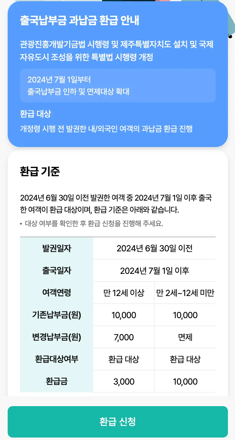 출국납부금 과납금 환급 제도는 2024년 7월 1일 제도 개편 이후, 수많은 항공 여객에게 해당되는 중요한 정보입니다. 특히 2024년 6월 30일 이전에 항공권을 발권했고, 7월 1일 이후에 출국한 경우,